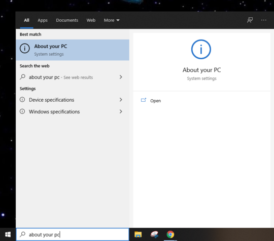 1. Click on the Windows Start menu and type in About your PC.
